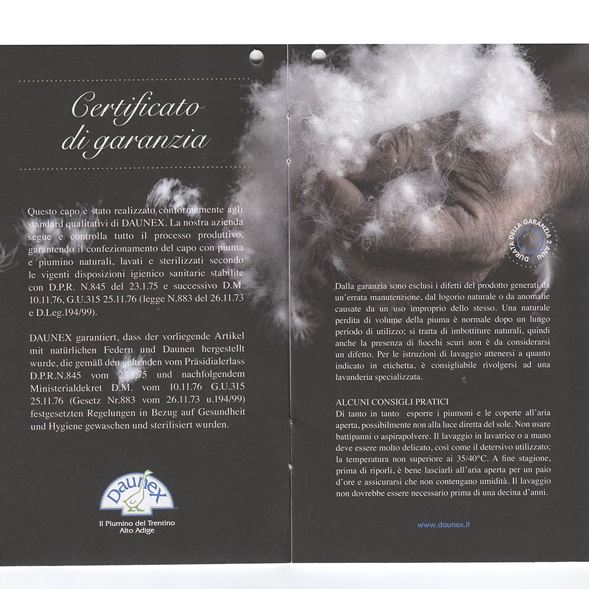 DAUNEX Piumino d'oca 100% piumino d'oca art. CUPIDO