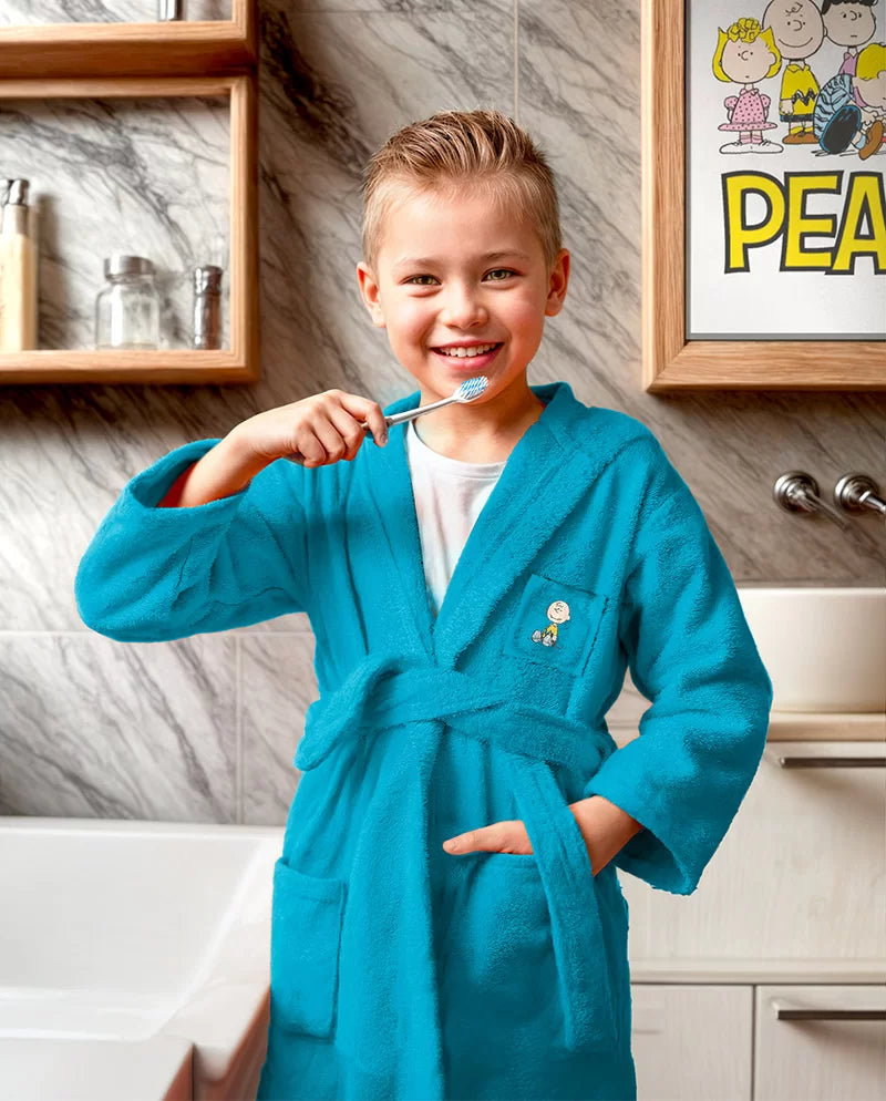 Con l’accappatoio Peanuts, il calore e la morbidezza si incontrano in un mondo giocoso dei tuoi personaggi preferiti: da Charlie Brown, a Snoopy e Woodstock.